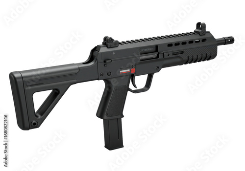 Isolated Heckler & Koch MP7 submachine gun, personal defense weapon, lightweight, modern firearm