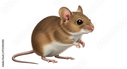 Isolated House Mouse Standing, Wild Rodent with Big Eyes and Whiskers, Small Mammal