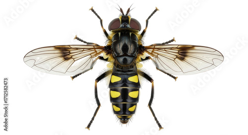 Isolated Hoverfly on a Clear Backdrop, Capturing the Beauty of a Striped Insect in Studio