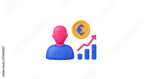 Isolated icon about financial advisor with growth, euro coin, pink human figure and bars