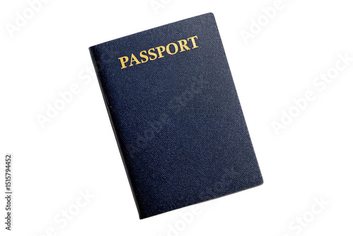 Isolated image of a blue passport with gold lettering on transparent background. Symbol of international travel, identity, and official documentation