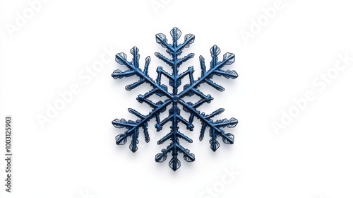 Isolated intricate snowflake with fractal patterns on a white background, fine crystal details, blue-gray icy tones
