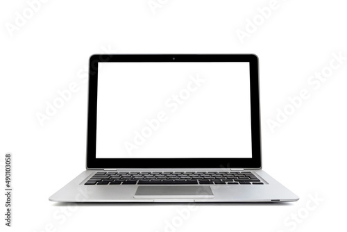 Isolated laptop with a blank screen, on a white background