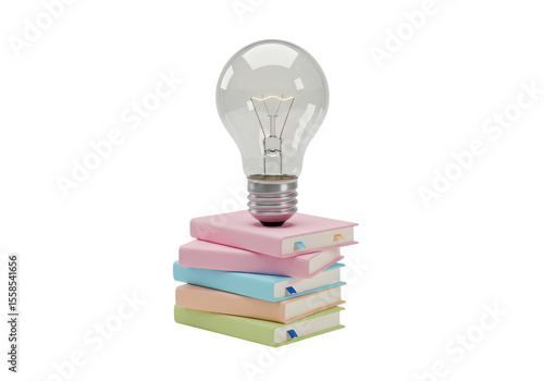 Isolated Lightbulb on Books Stack Creative Idea Symbol