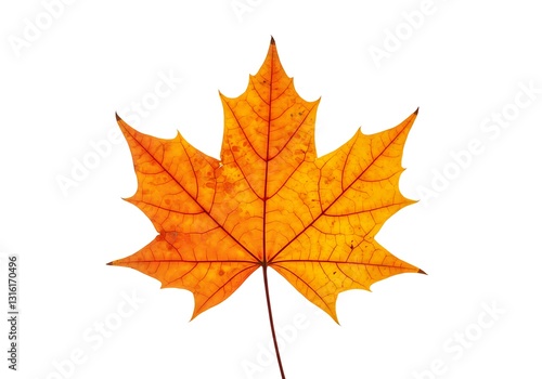 Isolated Maple Leaf Displaying Autumn Colors, Veins and Detail on White
