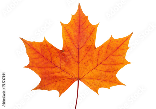 Isolated maple leaf in autumn colors of orange and brown showing veining and texture detail