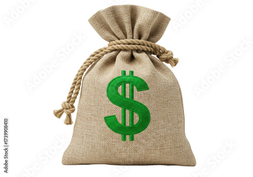 Isolated Money Bag Concept with Dollar Sign a Pouch, Burlap Sack for Currency, Economy Concept