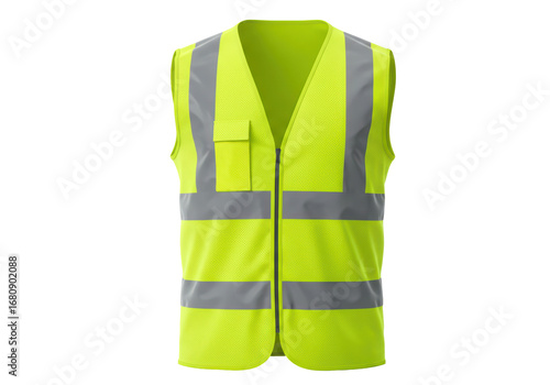 Isolated neon yellow safety vest with reflective stripes for construction worker gear
