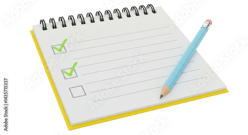 Isolated Notepad with Pencil and Checkmarks