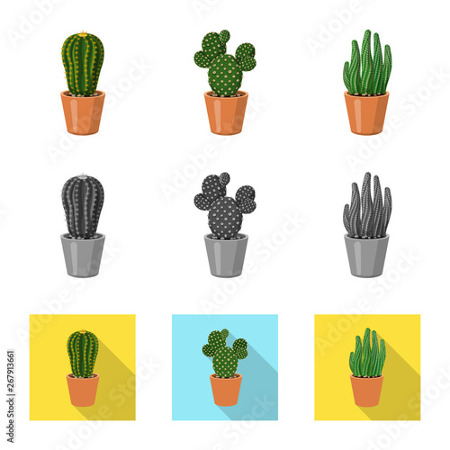 Isolated object of cactus and pot icon. Collection of cactus and cacti stock symbol for web.