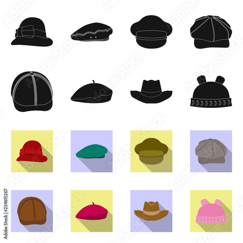 Isolated object of headgear and cap icon. Set of headgear and accessory stock vector illustration.
