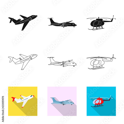 Isolated object of plane and transport logo. Set of plane and sky stock symbol for web.