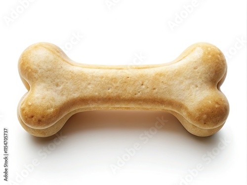 Isolated on white, a tempting dog snack bone, dramatically lit for nighttime pet food photography.