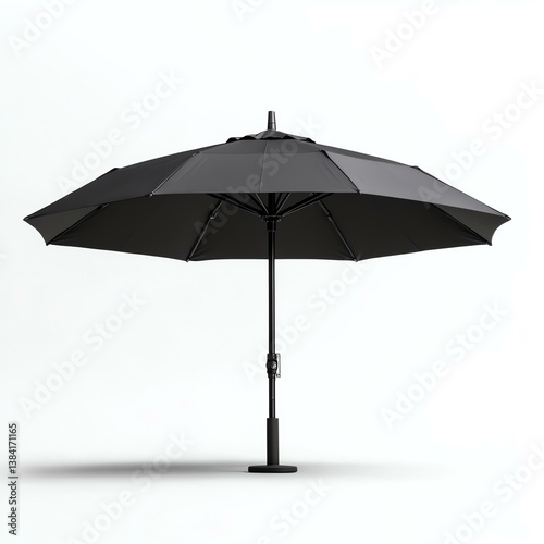 Isolated on white background. Elegant black umbrella for outdoor relaxation.