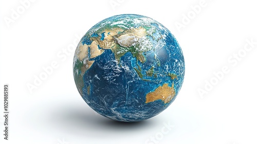 Isolated on white, planet Earth's geography highlights Australia, Oceania, and Southeast Asia.