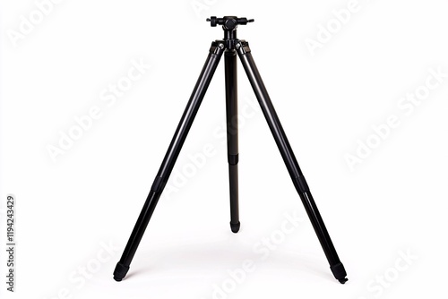 Isolated on white, this professional studio shot features a sleek, adjustable tripod with a premium camera setup, showcasing optimal lighting and clean lines for photography.