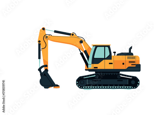 Isolated Orange Excavator with Hydraulic Arm and transparent Tread in Transparent Background Construction Vehicle
