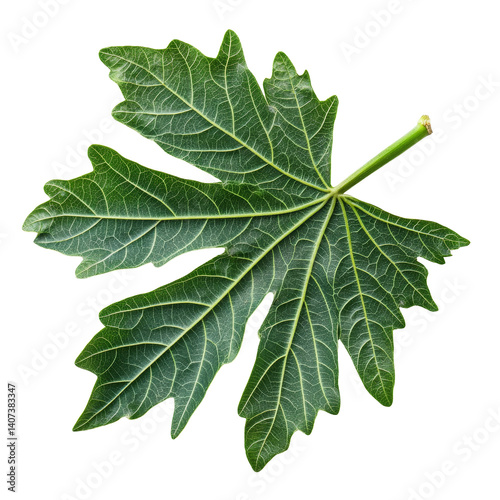 Isolated papaya leaf showcasing intricate details against a plain transparent background, papaya leaf tropical isolated on transparent background