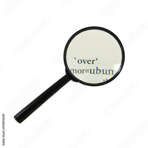 Isolated Photo Magnifying Glass Examining Text