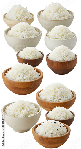 Isolated Photo of Various Rice Bowls on Transparent Background