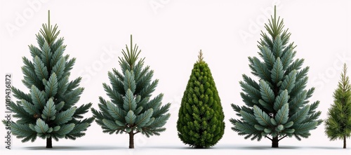 Isolated Piecea pungens Colorado blue-green spruces set against a clean white backdrop in a perfect cut-out