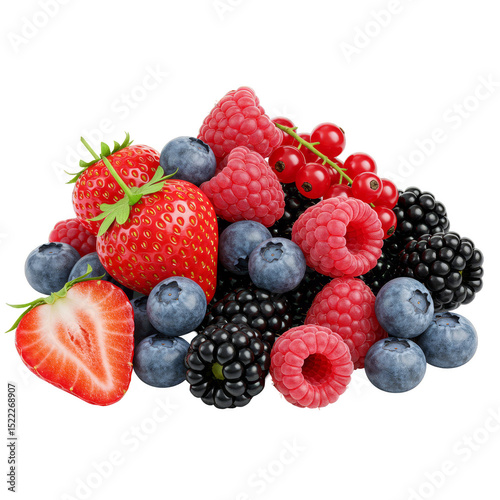 Isolated Pile Of Red Berries And Blueberries Fruit PNG Transparent