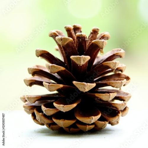 Isolated Pinecone on White Background with Resin, forest floor, greenery