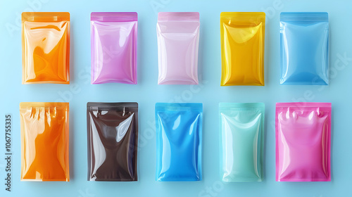 Isolated plastic ziplock bags and zip pouches in modern mockup style -