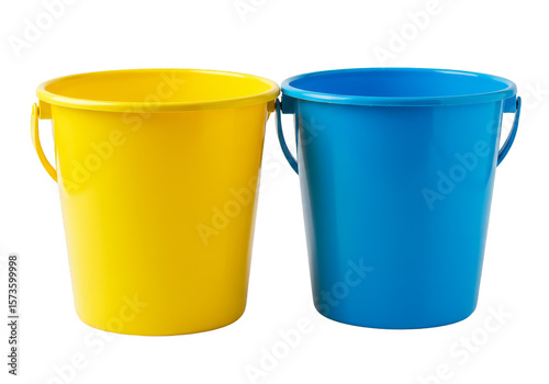 Isolated Png Two Plastic Buckets Blue and Yellow Containers for Housework