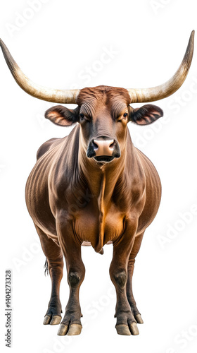 Isolated Portrait Of A Bull Showing Horns And Fur Against Transparent Background