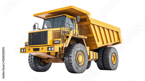 Isolated Powerful Yellow Mining Truck with Massive Tires