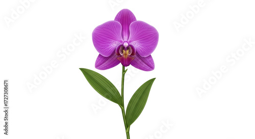 Isolated Purple Orchid Flower Blossom with Green Leaves Delicate Floral Beauty Stock Photo