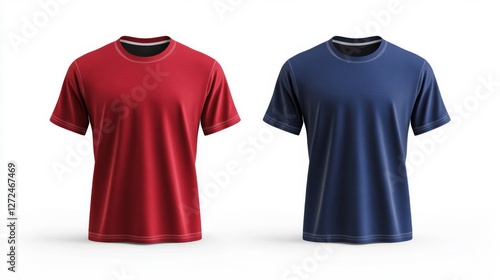 Isolated Red and Blue Short Sleeved T Shirts on White Background