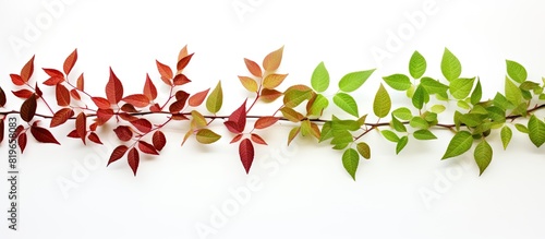 Isolated red and green leaves on a white background with copy space image