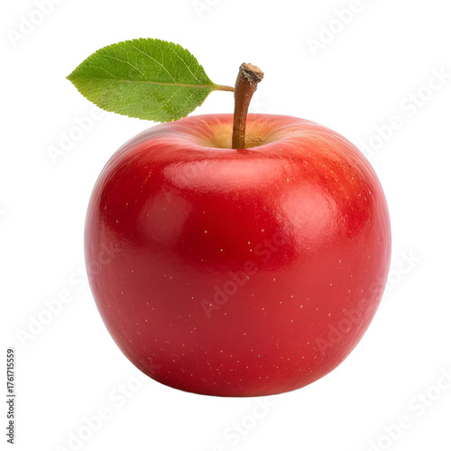 Isolated Red Apple Fruit with Green Leaf on Transparent Background