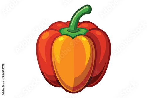 Isolated red bell pepper displays an appealing gradient color variation on white backdrop