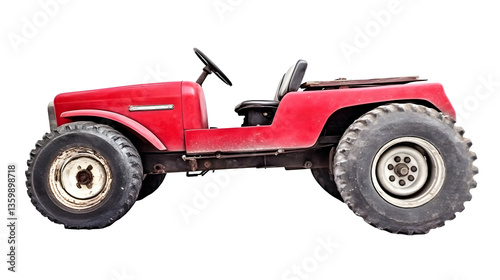 Isolated Red Vintage Off Road Vehicle with Big Tires on Transparent Background