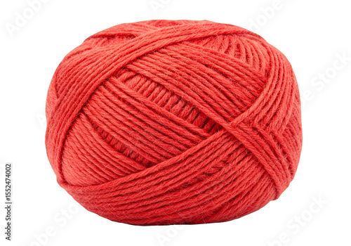 Isolated Red Yarn Ball Close Up with Thread Wool and Fiber Texture PNG