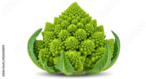 Isolated romanesco broccoli showing its unique fractal pattern on a white background close up view ai generative