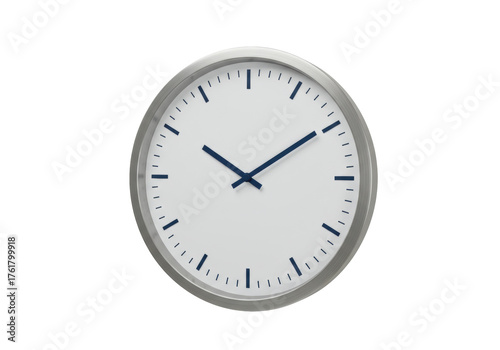 Isolated round clock with blue hands indicating 10 08 AM, time management concept, design