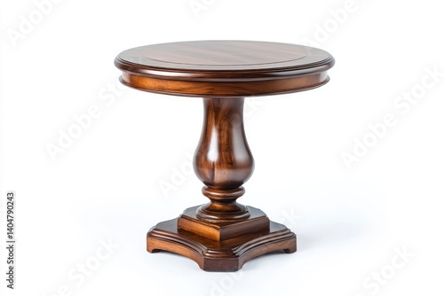 Isolated Round Wooden Table with Pedestal Base on White Background