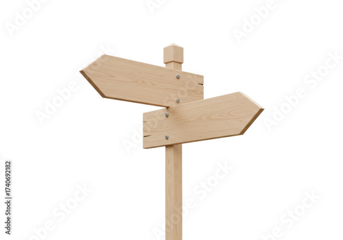 Isolated rustic wooden arrow road sign with direction on pole, signpost or signage