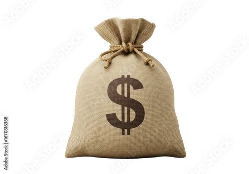 Isolated sack filled with dollar, symbolizing money earnings, budget growth and investing