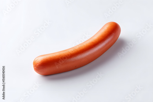Isolated sausage on white. Single sausage with smooth texture, isolated on white. Realistic food object for culinary or packaging visuals.