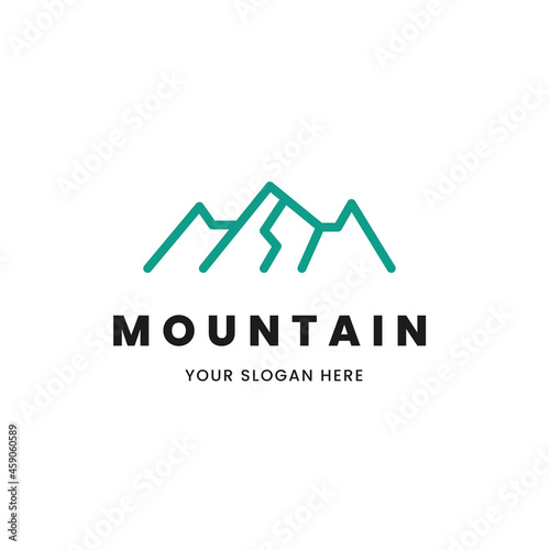 Isolated simple and minimalist monoline outline image of blue mountain logo. Logo for the mountain climbing or travel shop.