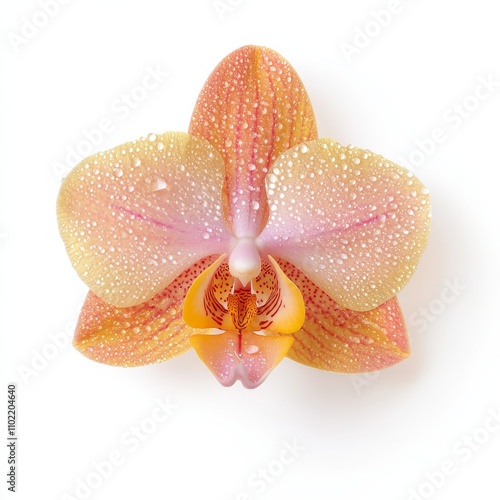 Isolated Single Orchid Flower with Dew Drops on White Background, Captivating Natural Beauty
