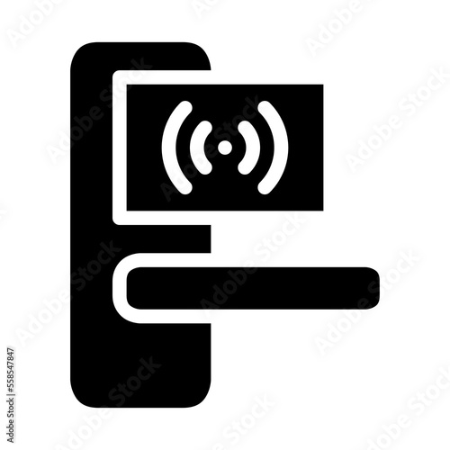 Isolated smart lock with key card in solid glyph icon on white background. Smart door, smart home, iot, security, tech, smart card