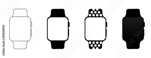 Isolated space black aluminum watch with black band black smart watch on white background
