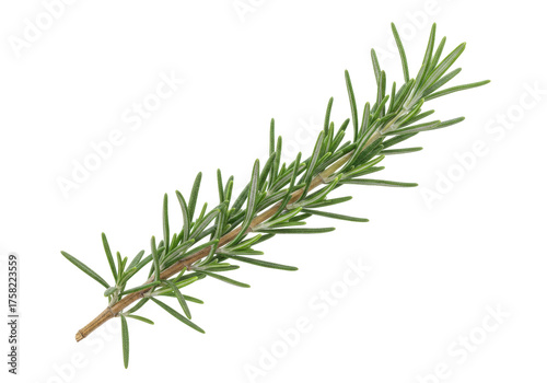 Isolated sprig of fresh rosemary herb, green aromatic spice for cooking and seasoning