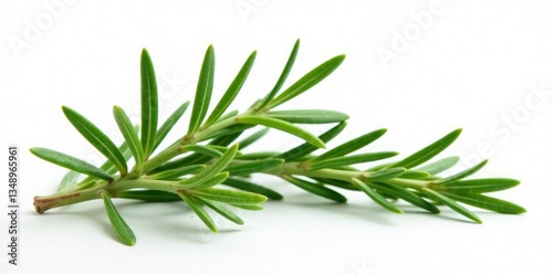 Isolated sprigs of fresh rosemary leaves against a clean white background, isolation, fragrance